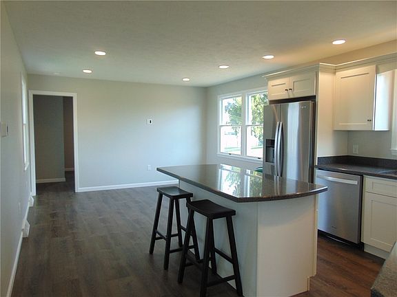 New construction with everything on one floor! Open floor plan with custom built kitchen cabinets with high-end Whirlpool stainless steel appliance package, solid surface counter tops, and a gorgeous center island. Life-proof flooring throughout. Bathroom has custom cabinets to match the kitchen and includes a stackable Samsung washer and dryer. All built on a fully conditioned basement perfect for all your storage needs. New high efficiency gas furnace and central air. Quality workmanship that you must see to appreciate. Nothing to do but move in! Off street parking.