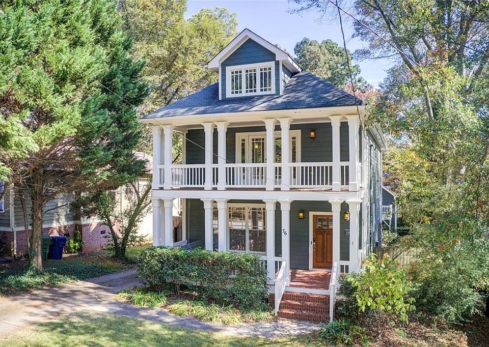 This charming home has amazing curb appeal with its double covered front porches. This home has an open floorplan with tons of natural light. Hardwood floors, crown molding and high ceiling on the main level. There is a large formal fireside living room, separate dining room, kitchen has granite counter tops, stainless steel appliances, pantry and room for a breakfast table. The entire interior and exterior have been recently painted. The primary bedroom has two walk in closets, luxury bathroom with double vanities, separate tub and shower and private covered patio. Two additional guest bedrooms upstairs with a hall bathroom. The laundry room is upstairs. There is a private deck off the back that overlooks an area with a fire pit. Detached carriage house with 2 car garage below for parking and extra storage. This finished area above is an oversized room that is perfect for an office, entertaining or extra living space. There is a remote to open the electric gate to enter the driveway. Walking distance to restaurants, shops and schools.