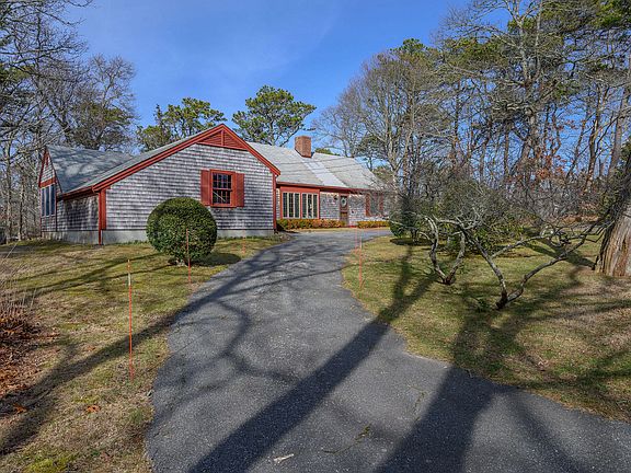 Fantastic location! This two bedroom, two bath ranch sits on a private half acre setting in a lovely neighborhood. It's just minutes to Nauset & Skaket Beaches, tennis, pickleball, an amazing playground, the Rail Trail, Cape Cod League Baseball games, restaurants, shopping andmore! Easy one floor living is perfect for retirees, first time buyers or use it as a great vacation or rental opportunity. The open living/dining room area boasts hardwood floors, a wood burning fireplace and a large bay window. The galley kitchen is just off the dining room. There's plenty of flex space loaded with windows making it perfect for a den, office, or game room. You can also enjoy cool summer nights in the large unheated sunroom. Both bedrooms are generous in size with the primary offering a 2003 expansion which added an office area with built ins, a private bath w/walk in shower and private entrance.....perfect for Mom, adult child or roommate? There's a tiled bathroom in the hallway as well as access to a very large walk up attic space to safely store all your precious belongings! The several newer Mitsubishi mini splits throughout, keep the home perfectly comfortable all year long. Relax on the newer brick patio which overlooks a private natural backyard which only adds to the serenity this property offers. Additionally, the oversized attached garage allows convenient and ample storage.