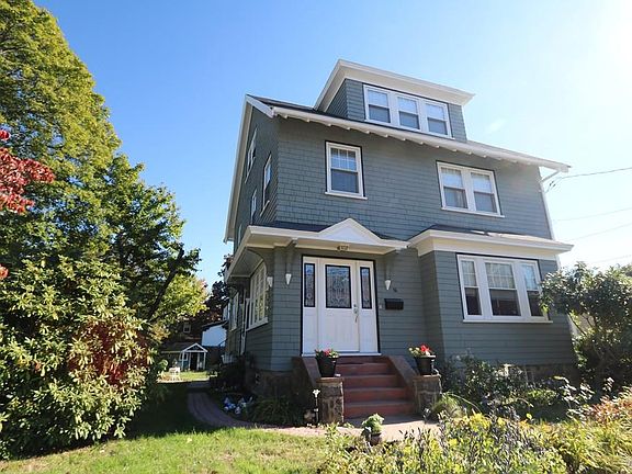 This Colonial home is set in a desirable location just steps to Roslindale Village with shops, restaurants and commuter rail! Beautiful home with nice curb appeal with an oversized lot with patio and fruit trees. Spacious kitchen overlooks the yard and gardens. Nice sunroom filled with natural sunlight. Two car detached garage with ample off street parking. Three levels of living in with 5 bedrooms. The master on the third floor has seasonal city views. This is a top location!