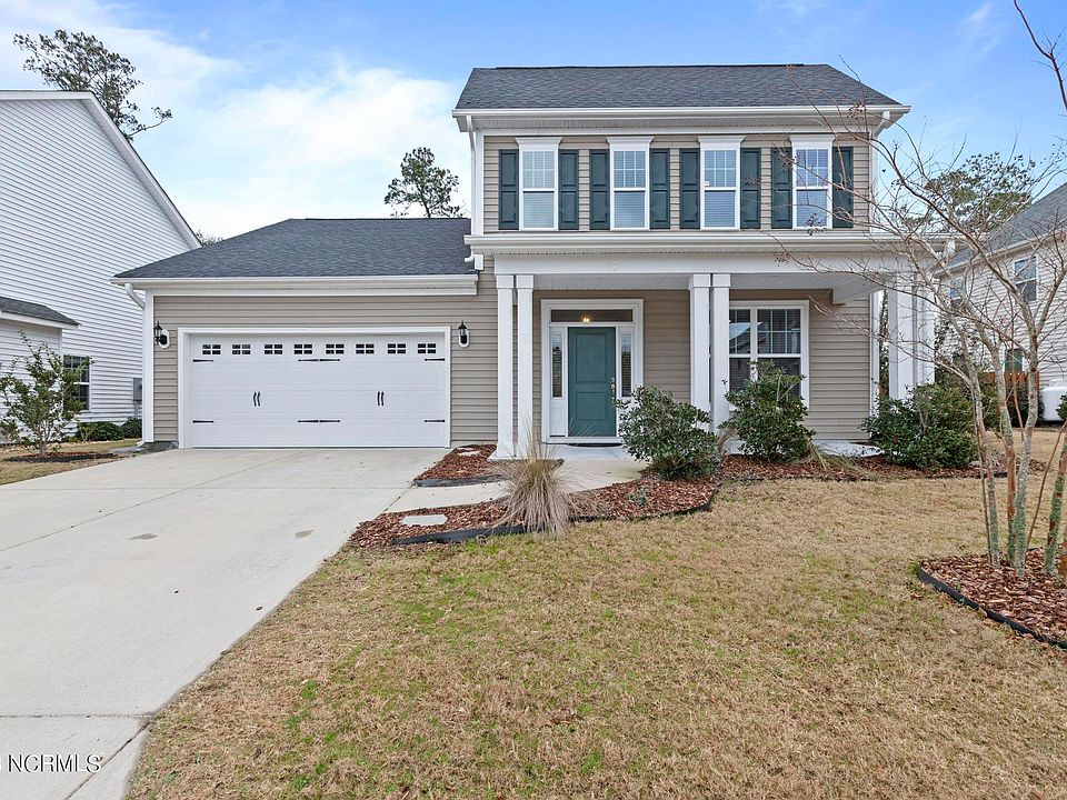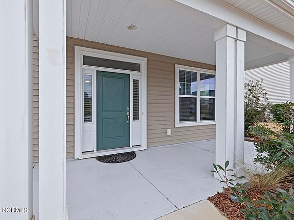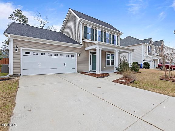 Welcome to Collins Way in the Villages at Olde Point! This stunning home is located in Hampstead just 20 minutes from Wilmington, the beautiful Topsail Beaches and situated in the desirable Topsail School District. Entering the property, you will find beautiful walnut hardwood floors used throughout the first floor. French doors on your right open up to a great home office or multi-use space with custom wall paneling. The gorgeous archways in the home will immediately catch your eye as they lead you past a half bath, and laundry room into the open living, dining, and kitchen floor plan which includes a gas fireplace and plenty of natural light. The kitchen features granite countertops, stainless steel appliances, a gas stove, and a large island with extra seating great for entertaining. Additionally, you will find an added sitting room just off the dining space. The first-floor master bedroom includes a tray ceiling with an ensuite master bathroom showcasing a dual vanity, a large walk-in shower, and the walk-in master closet. On the second level of this home, there is a guest suite with walk-in closet and private bath as well as an additional 3 bedrooms, a bathroom, and a walk-in attic. Upgrades to the house include a whole house water filtration system and a peaceful, fenced backyard that features an outdoor shed plus an extended patio and large pergola to enjoy the beautiful landscaping. Collins Way has everything you need and so much more. Schedule your private tour today!