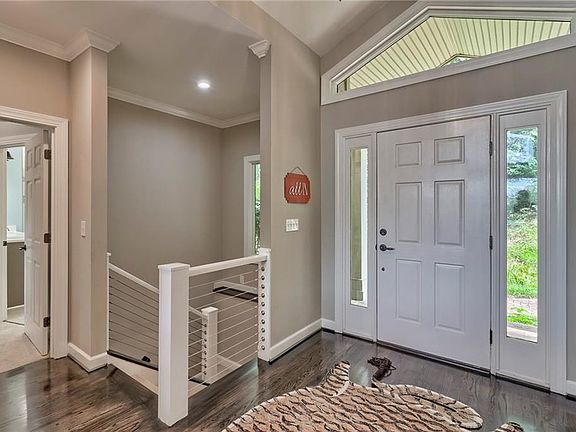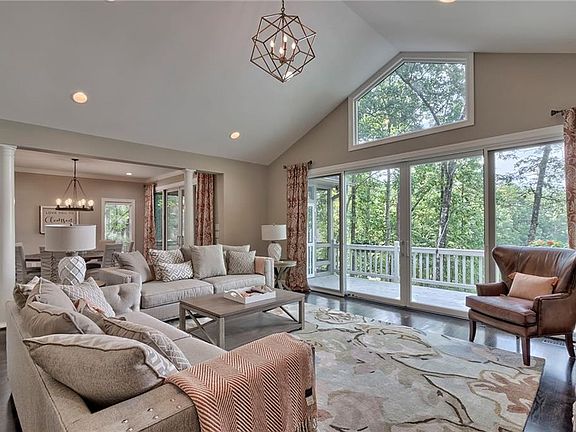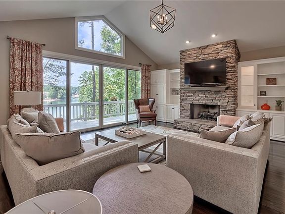 Fabulous waterfront home quality built by Steve Yoder. Offering a bright open modern floor plan with dramatic architecture and captivating lake views from most every room in the house. Throughout the home you will find beautiful hardwood floors, Granite counters, updated light fixtures, designer tile and so much more. The foyer flows into the great room which is surrounded by windows to enjoy the stunning lake views. This room is appointed with warm hardwood floors, a stone fireplace, built-in bookshelves and a soaring cathedral ceiling. The great room has sliding glass doors that open up to the spacious upper level deck. The exceptional kitchen has a commanding center island with built-in wine rack, stainless steel appliances, Granite counters, a spacious breakfast room and a built-in desk area. The perfect place to entertain a lake crowd. There is a cozy screened porch right off the kitchen for additional outdoor living. The master retreat is graced with lots of windows to enjoy the lake views and a generous walk-in closet. A luxurious master bath is highlighted by his/her vanities with modern sinks and faucets, a glass walk-in shower and a separate tub. The terrace level has a recreation room with glass doors leading out onto another lower deck. This is another place to relax and enjoy the lake views! Three additional guest suites with one full bath complete the lower level. Lots of unfinished storage space for future expansion. Gentle slope to platform dock in deep water with with lakeside deck. A true gem on Lake Keowee!