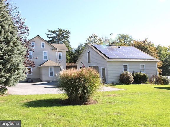 Original Farmhouse on Beautiful Park-like setting (conservation land beyond the .71 acre lot). Entrance foyer, Hardwood floors . 5 Bedrooms and 2.5 Baths. Master bath remodeled with walk in shower plus walk in closet. First floor laundry plus second kitchen/utility room and powder room. Breakfast room/sitting room off spacious kitchen. Newer stainless appliances. Central vac.Two staircases to upper floor. Huge deck under roof) overlooks lovely private yard. A stream is at lower rear of property. Above ground pool with built in wrap around decking. Basement workshop and "man cave." Spacious macadam driveway. Oversize detached garage with recently added solar panels. Garage is a hobbyists dream, also has second floor. Home is within walking distance of schools. Washer and dryer included. Home warranty included.