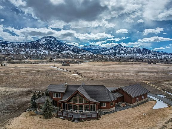 Quintessential Mountain Modern Home! Custom designed to capture the picturesque mountain views & has beautiful interior features; granite counters, tile flooring, high end appliances, vaulted wood ceilings & 3 car heated garage. Located between Yellowstone Park & Cody, WY, experience elk, deer, eagle & an occasional bear pass through your yard. Access to 1 1/2 miles of Blue Ribbon fishing on the Shoshone River.