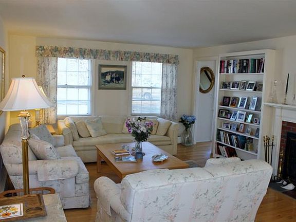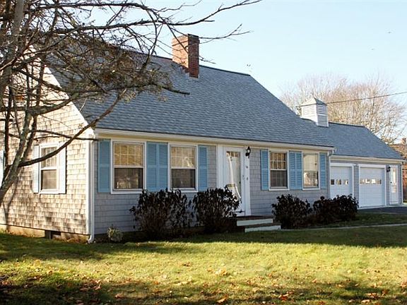 Downtown Falmouth and a short walk to Surf Drive Beach or Falmouth Harbor! This beautiful home has 4 bedrooms, 2 baths and an oversized two car garage on almost a half-acre of land. Large front to back fireplaced living room with a beautiful picture window letting the outside in. Eat-in kitchen with electric cooking, built-in Microwave and dishwasher. Step down or sunken family room with beautiful knotty pine ceilings, walls and trim. This room enjoys three sides of windows looking over the back yard with sliders to your blue stone patio. 2 Bedrooms and a full bath complete the first floor. The second floor has two generous bedrooms and the second full bath. The basement has a finished room with wall to wall carpeting. New heating system, new roof, newer electric panel. Don t wait on this one! Bank could possibly require flood insurance.