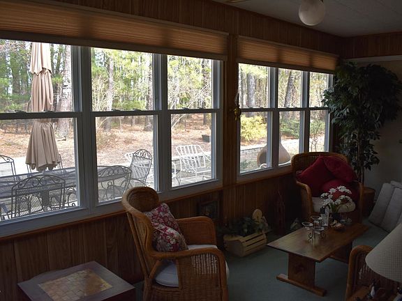 The moment you arrive you will love this home. Vaulted ceiling in the living room which also features a beautiful wood burning fireplace opening to the dining room with sliders and a view of the private wooded back yard and large 50 x 134 property. Heated sun room, spacious patio and retaining wall. 2 Bedrooms and 2 full baths. Kitchen has newer cabinets and appliances and a huge stainless steel sink. All of this in desirable Lions Heads North.