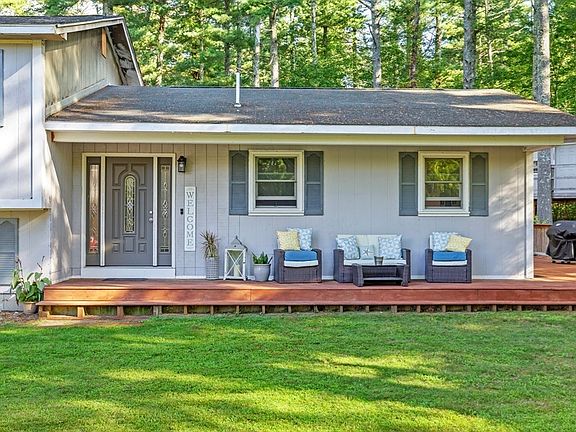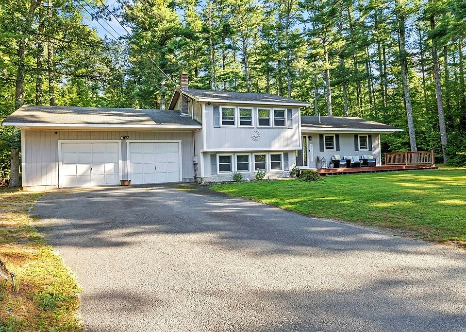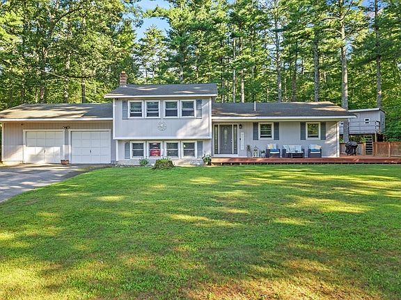 Welcome to Carver – where charm meets privacy! This well-maintained home is set back on a wooded lot and features a two-car garage and a wraparound deck perfect for enjoying nature. Inside, you'll find newer wood laminate flooring throughout the main level. The open-concept kitchen offers ample storage, a dining area, and a slider to the deck. The living room also includes a slider to the backyard, creating great indoor-outdoor flow. Upstairs has three bedrooms and a full bath. Downstairs, a spacious family room with a wood stove offers flexibility for a playroom, office, or guest space. Laundry area with newer washer/dryer and access to the basement. The peaceful backyard includes a fire pit, treehouse, and chicken coop. A unique opportunity to enjoy comfort and space in beautiful Carver!