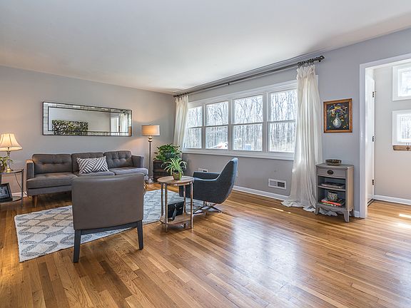 Welcome Home! Beautifully updated 3 bedroom, 2 full bath split level on a huge lot in a very desirable neighborhood. Large living room/ dining room combo make an ideal entertaining space. Eat in kitchen with granite counters, stainless appliances and tile backsplash. Two large bedrooms with ample closet space and spa like bath with gorgeous tile and jetted tub complete the second floor. Third floor boasts huge master retreat with double closets and stunning newly renovated bath with stand up shower and designer finishes. Cozy lower level family room leads to the gigantic rear yard with fruit trees and garden. Central air, newer roof, freshly painted inside and out and hardwood floors throughout. Very quiet street across from wooded area. Few blocks to school and very close to train and bustling down town