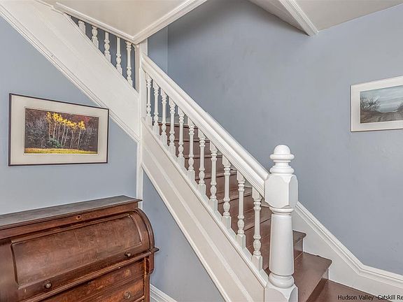 Spacious 2 family Victorian on a quiet street in the desirable Kingston neighborhood of Ponckhockie. This property is currently unoccupied so the new owner can choose to live in the larger part of the home and rent the apt or this could be a great investment property. The main floor has a front formal living room with oak floors that is bathed in light; French doors lead into a formal dining room; both with ornamental fireplaces and custom molding and woodwork. Off the dining room is the roomy kitchen which creative cooks will love. The kitchen opens to a bright and airy family room addition, with high ceilings and a wall of windows with a door that leads out to a multi level deck. The laundry room is conveniently located nearby. A full bathroom, one good sized bedroom and a small room that would make a great office or nursery complete the first floor. There are two sizable bedrooms on the second floor. Head up the outside staircase to a glass enclosed porch where you'll find the sweet 1 BR getaway apt. Both units have their own electric meters; main is heated with natural gas and the apt is electric baseboard. Potential indoor access between the two units allows for multiple uses.