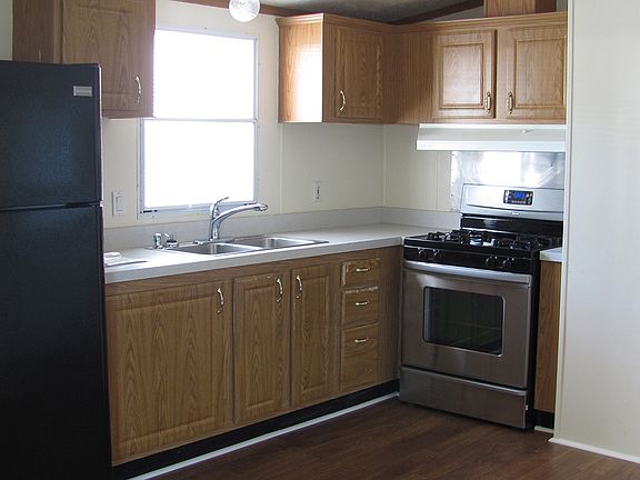 Must see 3 bedroom 1 bathroom open concept floorplan, single family home, with wood kitchen cabinets, updated kitchen appliances, large living room with ceiling fan, covered front porch, washer/dryer hook-ups, central air, 10x20 deck, 6x6 storage shed, and located on a flat lot. Come visit our community, Highland Estates where all residents have access to our community swimming pool, clubhouse, and playground.