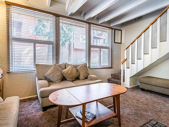 Upgraded Corner Unit Townhome Close to Canyon Lodge. Light and bright with extra (corner unit) windows, extended loft for additional sleeping area, and tall vaulted ceilings giving a very spacious feel. One and a half bathrooms. Closest unit to the Private Spa. Tons of secure finished storage area beneath this unit unique to this location in the complex. Park right up to your front door for easy unloading/loading. Great access to the trolley and walking/biking path direct to The Village and/or Lakes Basin. One of the lowest HOA fees in all of Mammoth. Popular Nightly Rental! To be sold fully furnished in turnkey condition.