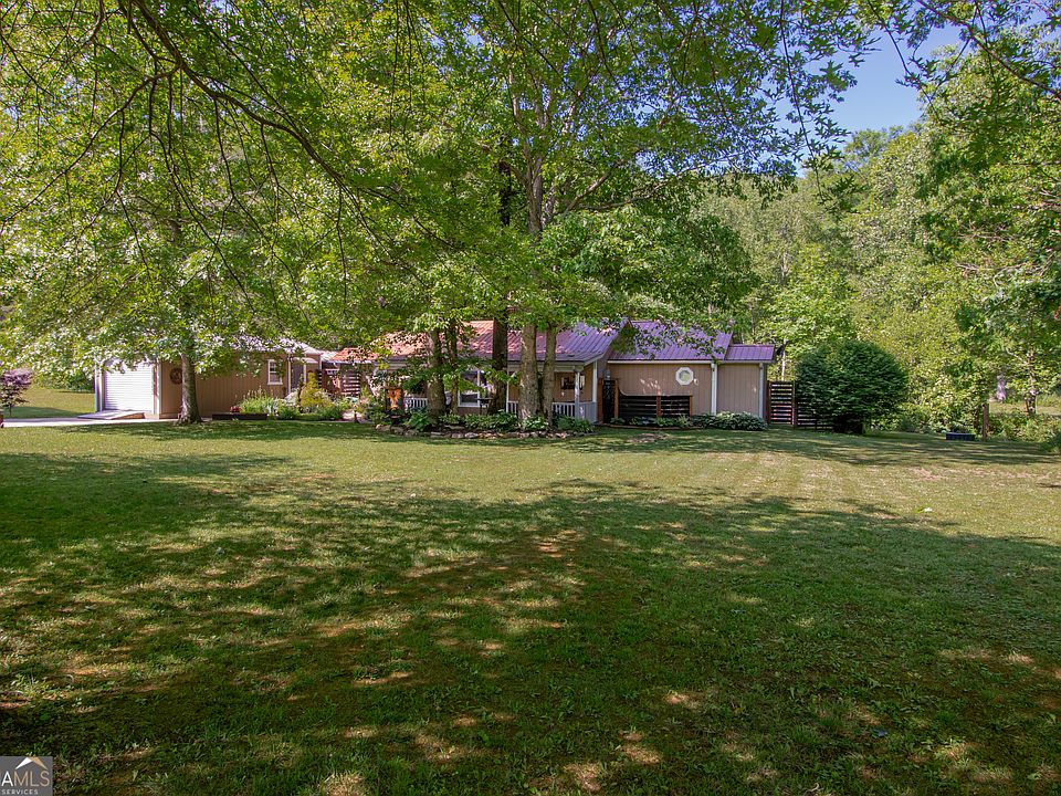Sitting on the back patio, listening to the creek flow past in your own private oasis, you'll wonder how you lived any other way. This home exudes peace and a welcoming spirit from the curb to the creek. Arriving you see a rarity in the mountains, a flat spacious lot perfect for gardening, playing, and relaxing under the gracious, mature trees. The metal garage currently serves as a flex space for storage and a work shop. The front covered porch has the space for your porch swing and a couple of seats to sit and enjoy the view and maybe a good novel. Inside, the split level floor plan is perfect for space and privacy but with everything on one level. The kitchen has been updated with beautiful countertops and is the prefect amount of space for food prep while continuing the conversation. Multiple closets for space and storage. The primary suite has a walk in closet, bathroom with a huge step in shower, and access to the incredible back patio. Stepping outside you're greeted by incredible landscaping, pergola, metal carport for coverage in whatever weather , and an epic tree house. All of this is fenced in beautifully with decorated gates to both the front yard and to the creek. Steps down to the creek are perfect for playing in the sparkling water or setting up a chair and trying a little fishing. Some homes are more than houses, they're the destination you've been trying to get to your whole life. It's time to take the dream and make it your reality. Get ready to fall in love with the mountains at 56 Deer Run Drive.