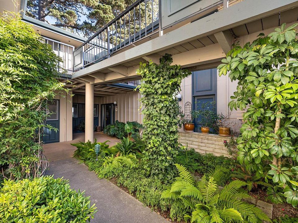 Highly sought after rare end unit with beautiful views of the mountains and valley! This absolutely charming renovated end unit has been lovingly maintained. The tranquil setting with nature views as your backdrop abound from the great room and formal dining area. Beautiful custom wide plank floors, and a formal European stone fireplace add to the allure of the true Carmel quintessential ambiance. Custom kitchen with gas stove, stainless steel appliances. Retreat to your master bedroom with new marble custom milwork double sinks beautiful new Chandelier lighting in your ensuite bath. Second bedroom and ensuite bath with marble custom sink chandelier lighting with custom bookshelves and recessed lighting use for guest or office. Radiant heat flooring through out unit. New wrap around deck with grandfathered in partial glass enclosure. Amazing mountain and valley views, use year long for breakfast, lunch, evening meals, or entertain with stunning views and breathtaking sunsets!