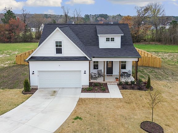 Less than a year old, this house boasts a long list of upgrades and improvements. At the end of a quiet cul-de-sac in the popular Goodwin Chase neighborhood, you'll enjoy a large private fenced backyard that backs to greenspace. Sit and relax on the covered front porch or grill and have dinner on the screened back one. Great floorplan with private master suite downstairs, half bath for guests, small office, laundry and mudroom/coat area,cozy fireplace, and bright open kitchen/living area. Upstairs has 3 bedrooms (or 2 plus a bonus), a full bath and a large walk-in storage room that could be converted to another bedroom. Lots of windows up and down! Some of the upgrades include - premium wood cabinets throughout kitchen and all 3 baths with soft close hardware, beautiful grey quartz counters, high quality appliances including convection oven and bosch ultra quiet dishwasher, wood laminate flooring throughout first floor, ceramic tile in master bath, contemporary shades on all windows, utility sink/cabinet in garage, keyless entry pad outside garage door, additional landscaping and newly seeded lawn. Long driveway for plenty of guests. Lightly lived in and Builders Warranty conveys~