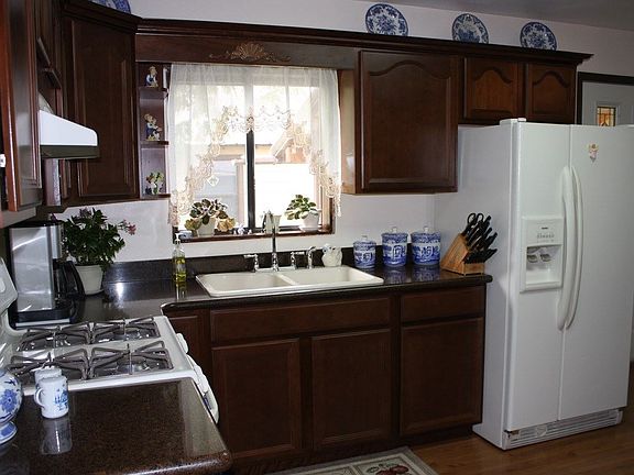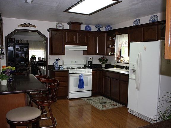 Beautifully updated home in town with a 2 car tandem garage with fantastic gardens. Kitchen and baths recently updated, gorgeous dark cabinets, granite countertops, marble bath in main bath and new laminate and ceramic tile floors. New carpet in living room and front Bedroom. The gardens are lovely. Refrigerator and gas range negotiable. Natural gas furnace and water heater with central air. Property is fenced. Call to make an appointment to see this great property today!