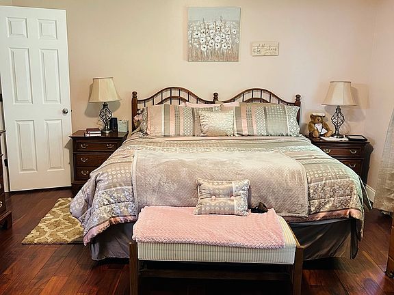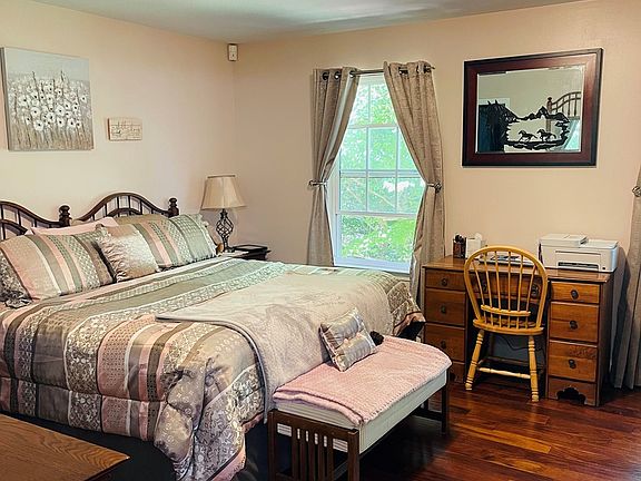 This stunning one-and-a-half-story home is move-in ready and sits on a large lot. The private entrance is beautifully landscaped and welcomes you as you arrive. In the summer months, it comes alive with an array of beautiful flowers and blueberry trees. There are several planting beds around the home that provides you with lots of seasonal colors. Meticulous attention to detail is presented in the kitchen with an open floor plan that seamlessly connects the kitchen, living room, and dining room. that leads to the inviting deck where there is plenty of room for entertaining or enjoying those quiet nights at home the whole family can enjoy. Adjacent to the living room, there's an oversized primary bedroom with gorgeous hardwood floors a walk-in closet, and an ensuite. Upstairs you'll find two more bedrooms bathroom and a bonus room that can be utilized to suit your needs. The front yard has plenty of open space and steps leading down to the firepit and sitting area to just relax and sit by the fire and enjoy a glass of wine or hot toddy on these cool nights. This property is well-maintained and ready for new owners. Welcome home!