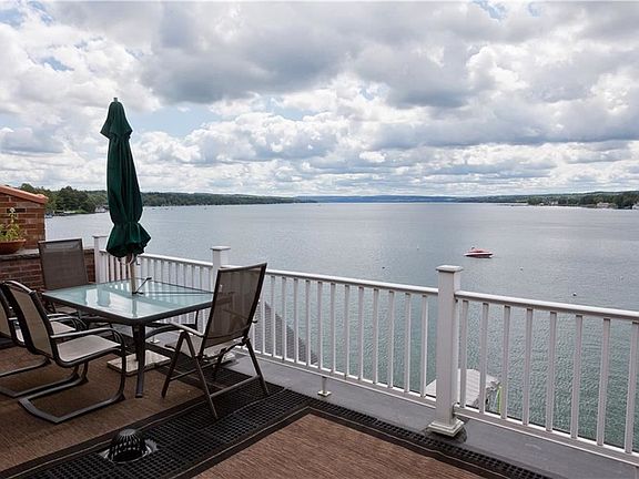 Skaneateles Village Center top floor waterfront apartment with elevator and large deck offers the most amazing views of the Lake.This Updated furnished or unfurnished apartment with Great room has so many Unique Moldings and Windows, Cathedral Ceiling, Gas Fireplace, Split Air Conditioning, Plank Flooring, Private Office overlooking the Lake along with a Large walk in shower and closet with loft above for storage. This apartment is turn key. Can be rented for 3 months furnished till Dec.31 . Please call for details.