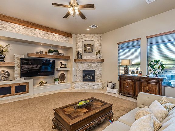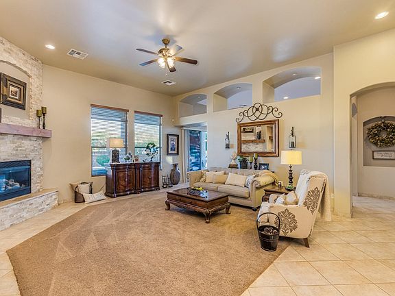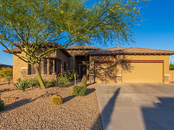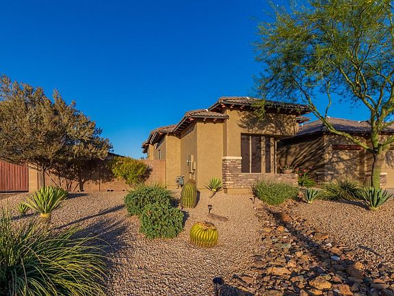 This corner lot home is beautiful inside and out! Step into a lovely formal living room with feature wall that has a stone front fireplace and high ceilings. Lovely architecture throughout the home. The expansive eat-in kitchen has an abundance of cabinets, granite counters, breakfast bar, wall mount ovens, gas cook top, SS appliances. The master has large windows that bring in the natural light, an archway leads to the master bath that boasts double vanity, soaking tub, seperate tiled shower, walk-in closet and private toilet room. The back yard is an entertainers delight with a large covered patio, sparkling pool with water feature. conversation areas and a putting green. RV gate & parking as well. Add this to your must see list today! Looking for more reason's to purchase this dream home? How about these:City Water.... so no water issues unlike many in the areaNew Kitchen Appliances, top of the line plus GAS CooktopNew Hot Water Heater & SoftnerPebble Tech Pool With waterfallRV Pumping Station2 RV GatesMany Fruit trees, Lemon, Orange & Grapefruit