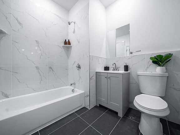 Spacious 2 Bed 2 bath 1100 sq ft in newer construction building unit features: Washer/Drier, Refrigerator, microwave, dishwasher & gas stove Laminate flooring in kitchen and living room , plenty closet space for storage . elevator building. parking available located on E Main Street for easy access to shopping, dining and public transportation. Renter responsible for gas & electric , renters insurance required