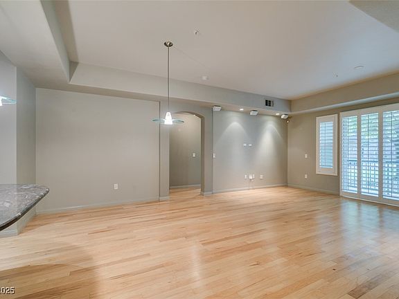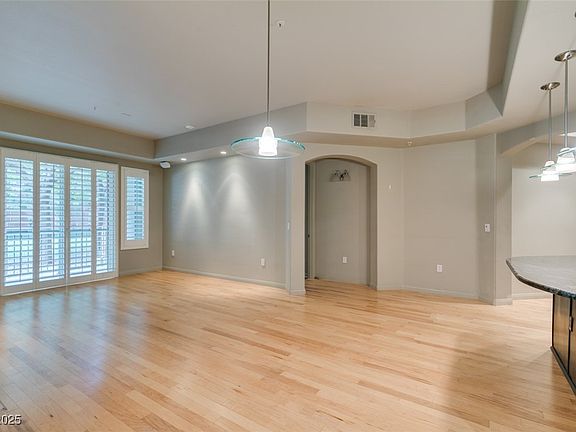 Highly desirable 1st floor condo with numerous upgrades including shutters, surround sound, ceiling fans, and more. Experience upscale mid-rise living in this spacious 3-bedroom, 2-bath home at the sought-after Manhattan Condos, a guard-gated community just minutes from the Las Vegas Strip and Allegiant Stadium. The open-concept layout offers high ceilings, abundant natural light, and a modern kitchen with granite countertops, stainless steel appliances, and a breakfast bar perfect for entertaining. The primary suite features a custom walk-in closet and ensuite bath with dual sinks and a soaking tub. Relax on your private balcony with peaceful community views. Enjoy resort-style amenities including sparkling pools, a state-of-the-art fitness center, yoga studio, clubhouse, business center, and lush green spaces. Pet-friendly community with a premium location offering comfort, security, and luxury at an unbeatable value.