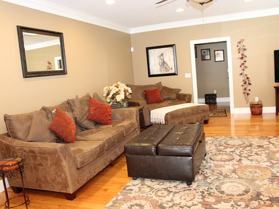 Stone gas fireplaceDeck with retractable awningsRoomy entertainment areaWet barCustom window seat