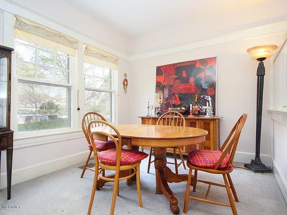 Charming craftsman bungalow nestled among large trees in a park like setting! This well cared for home has many of its original architectural features intact. The interior offers spacious rooms, a wood burning fireplace, original trim and built-ins, and oversized windows throughout for ample natural lighting. The first floor has a formal living/ dining room, large family room with sunny alcove overlooking the generously sized deck perfect for entertaining. The eat in kitchen is equipped with modern appliances and has an adjacent guest bath. The second floor has two large bedrooms, 3 oversized closets, and one full bathroom. Enjoy the outdoors on the quaint front porch or on the rear deck perched above the large flat yard featuring mature shade trees.