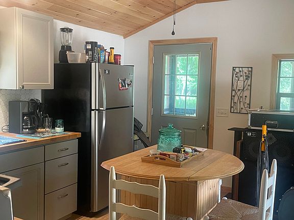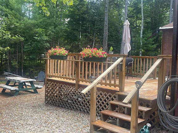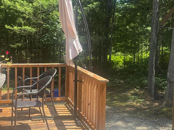 Private location on a dead end street! Built in 2019, new heat pumps added for heat/air conditioning. Home fully opened with water septic, cable, well landscaped! Direct access to ATV and snowmobile trails! This is more than a year round camp, with low taxes and two bedrooms with a full bath! Decorated nicely with a clean interior and hardwood floors. Garden and chicken coop. Blueberry, rhubarb, asparasgus, corn. Webb river and Mt.blue near by. An hour and a half to Portland! White cedar deck with some furnishings included, teak table, picnic table, flat screen, center island with storage. Generator hook up as well! MUST SEE INSIDE!