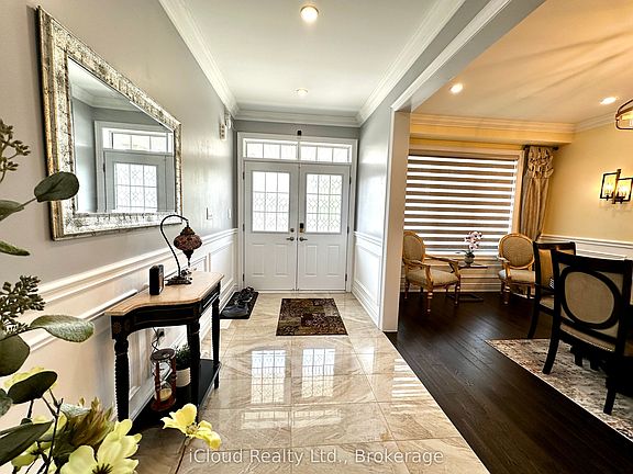 Prestigious 4+1 Bedroom, 4-Washroom Detached Home | 3,531 Sq. Ft. Above Ground (MPAC) | Premium 44-ft Lot | No Sidewalk | No Rear Neighbours | 6 Parking Spaces. Over $250K in luxury upgrades incl. All hardwood & shiny marble floors, Turkish runners, 8-feet tall doors, wainscoting, crown moulding, smooth ceiling, 6-inch trims & iron pickets. Main floor custom made closets. Largest custom Gourmet kitchen with WOLF Gas range, Bosch appliances including built-in wall oven & microwave, back splash, Pot filler & contrast granite Island with built-in trash bin. Over the island hang three elegant electric lantern lights. Walk-in Butler's pantry. Great family room with built-in shelving, 3 oversized windows, and gas fireplace. Private main floor den with window & 8' tall French doors. The mudroom with built-in bench seating and double closet. Separate dining combined with Living room with elegant wall sconce lighting for formal entertaining. Second Floor, 4 generously sized bedrooms, each with walk-in closets and ensuite/semi-ensuite access. A total of 3 full baths upstairs, including one semi-ensuite with double sinks vanities. Primary suite with private foyer, spa-inspired ensuite (frameless glass shower, soaker tub, private toilet room with closet & window, heated towel rack, Bluetooth mirrors), and massive walk-in closet like DEN. Second primary suite with private ensuite and rain shower. Laundry room like DEN size with laundry tub and double closet. The unfinished basement with cold cellar, upgraded windows, a 3-piece bath rough-in. 200-amp panel, 3.5-ton A/C, water softener & humidifier. Smart home: Built-in wall displays with speakers, Wi-Fi garage door openers with cameras & battery backup. Smart door locks and indoor and outdoor cameras, digital bath fan timers, smart switches, dual Wi-Fi pot lights, CAT6 wiring, and Gigabit Ethernet switch. Additional to all existing ceiling lights added 78 WiFi indoor Dual POTLIGHTS with night mode.See FEATURE SHEET for details.