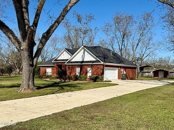 Stunning brick home in Byron's Kewanee Farms Subdivision! Within easy walking distance to shops and restaurants! This meticulously maintained residence is ready to welcome you. With three spacious bedrooms and two full bathrooms, this home sits on an impressive 1.19-acre lot surrounded by beautiful mature pecan trees. The inviting living room features elegant tray ceilings and a charming brick gas fireplace, providing warmth for those chilly nights without the hassle of chopping wood. The expansive kitchen, complete with a cozy breakfast area, is perfect for casual meals or entertaining in the separate formal dining room. The primary suite is a true sanctuary, boasting tray ceilings, his and her walk-in closets, a spacious separate shower, and a soothing jetted tub-ideal for unwinding after a busy day. Step outside to enjoy the fresh air on the covered back patio, a perfect spot for relaxing in warmer weather. Plus, the convenient outbuilding on a cement pad offers the perfect solution for extra storage. This home has an abundance of space for enjoying life year-round! Don't miss out on this incredible opportunity-schedule your showing today and see everything this remarkable property has to offer!