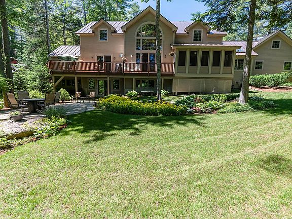 Welcome to the best of golf course living! This upscale home on Eastman Golf Links is on the market for the very first time. A custom Yankee Barn home on the 2nd fairway with golf course views throughout many rooms. This spacious 4,397 SF home offers sleeping quarters on each of its 3 finished levels. Featuring a statement living room with cathedral ceilings, a 2-story window display, double-sided fireplace, and the quintessential wood beams highlighting its architecture. A beautiful kitchen with an island and stainless steel appliances sits opposite the dining area with sliders to a cozy sunroom. Retreat to the main level Primary bedroom suite with its own bath and deck access. You’ll also find an office with skylights, family room with deck access, and a half bath on the main level. The upper level has a loft area + 2 bedrooms and a full bath with separate tub and shower. The finished walkout lower level is an expansive space for gatherings and game nights. It includes a family room area with built-ins, a wet bar with seating, a built-in desk with storage, and a rec area. This grand home is complete with a 2-car attached garage, tiled mudroom, level lot and paved driveway. Eastman offers lake activities, golf, cross-country skiing, tennis, pickleball, walking trails, an indoor pool, fitness center and more. All this in the heart of the Dartmouth - Lake Sunapee Region with easy access to I-89.