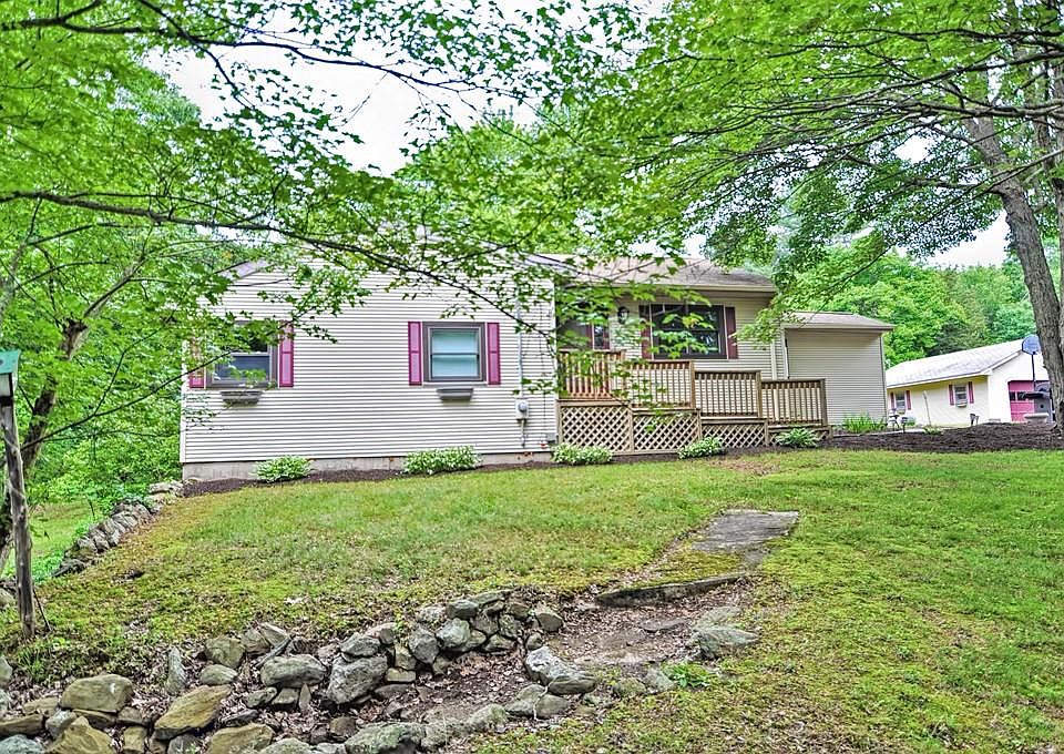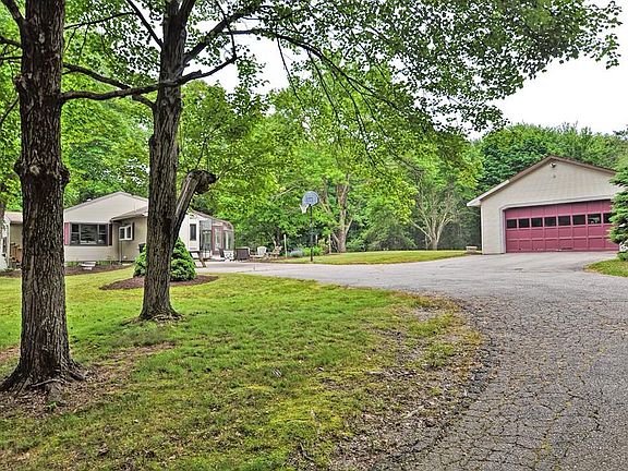SELLER TO ENTERTAIN OFFERS FROM $399,900 - $439,900. Welcome to this private paradise set on over four acres!! Home features an open floor plan with large living room that opens to the sun drenched sun room and large kitchen...the home has new flooring, updated appliances and lots of fresh paint...two large updated bathrooms with double sinks and one featuring a jacuzzi tub w/separate shower....large wood stove does a great job heating the first level...also a mini split system that provides a/c and additional heat source...spacious master bedroom with huge cedar closet and custom built ins drawers... Lower level could be used for either 2nd family room or master suite with large bathroom that has been added...additional room is partially done and would be great for an exercise room and also boasts a huge closet for additional storage...stunning patio and large two car garage completes this stunning home...great property for horses!!! Easy to show!