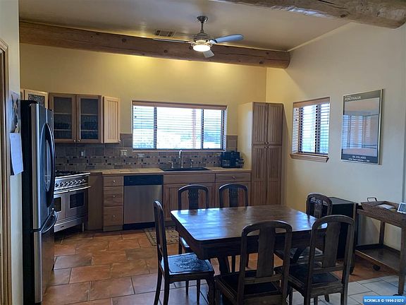 This is a beautiful horse property. Groomed, cared for, quality, and ready for a new owner. The property borders a subdivision park area. Huge Cottonwood trees line this area. The lot is 10.7 acres of usable land for horses or growing. There is 1 acre of water right on the property. The horse set up includes an outdoor arena, a covered riding ring, an insulated 4 stalls on dirt and 3 on concrete barn, and 4 large paddocks (solar controls). The barn also has electricity to it, a tack room, office area, and cross ties in the ally. The custom home has many windows to allow you to enjoy the Mogollon Mountains. These widows flood the rooms with natural light. High ceilings give the open rooms an even larger open feel. Two of the three bedrooms are carpeted with the third and the rest of the home beautiful tile work. The master bedroom opens to a courtyard. Amazing observatory/shop building on the property with an sliding roof. Close to riding trails in the Gila Natl Forest.