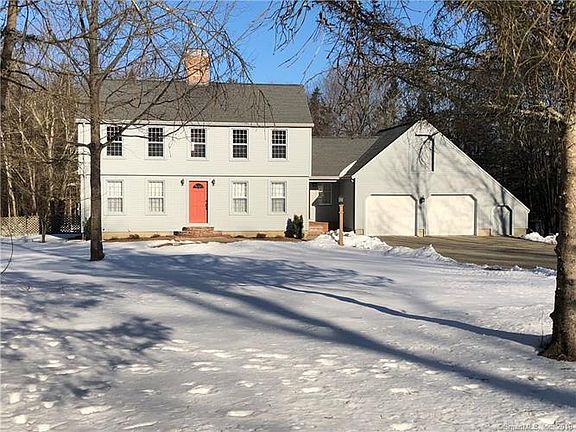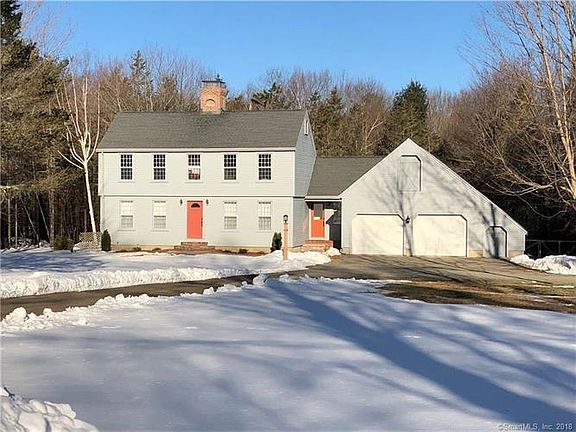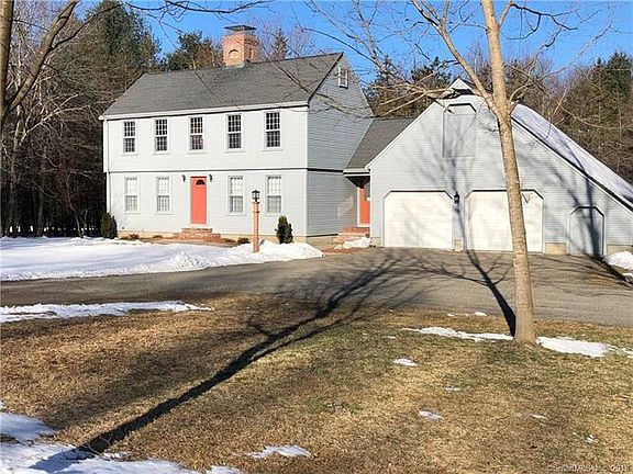 Stunning Colonial on 2.24 acre wooded lot, full of New England charm. Newly renovated kitchen with SS appliances and new hand crafted Acacia wood counter top. Beautiful three bedroom, two and a half bath home with an open floor plan and a striking center chimney wood burning fireplace. Wide plank wood floor in first floor living area. Southerly exposure floods living areas with loads of natural sunlight. Large 1st Floor Master Bedroom Suite. Updated Master bath. First floor half bathroom/laundry room. Large private fenced yard. New 200 amp electrical service with manual generator interlock. Extra storage under eaves and in garage loft. Minutes to exit 69off I 84. Convenient to UConn, Willimantic, Eastern, Hartford and the Mass line.