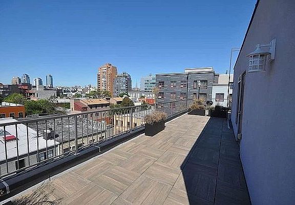 Make your home in the heart of North Brooklyn. Welcome to 56 Frost, an 8 unit, boutique luxury building situated at the crossroads of Williamsburg and Greenpoint, two of Brooklyn's most beloved and historic neighborhoods. Built in 2016, 56 Frost features high end, contemporary design considerations both throughout the building's common areas and within each spacious and sun-filled unit. Building amenities include card operated washer/dryer units, a tenant fitness room, and partial shared roof access. Transportation can be found approximately 5 blocks away with L train station at Lorimer St, as well as the G train at Nassau Ave. Unit #4F is a 3 bedroom penthouse, 1.5 bathroom duplex apartment located on the 4th and penthouse floors. The apartment opens up into a large living space and open kitchen. This space can accommodate a generous amount of seating, such as a sectional couch, with additional room for a small dining table, desk, or other additional furniture. Both the full and the half bath are accessible from the apartment's common space, allowing the tenant's to keep the half bath as a guest washroom if desired. The three equally sized bedrooms feature floor to ceiling windows which let in generous light. The two bedrooms on the lower floor each contain their own private access to a shared balcony, while the upper floor bedroom has its own private access to a spacious roof deck. Additionally, each bedroom, as well as the living room, has its own heat and air conditioning unit built in, giving tenants the ability to heat and cool the apartment by zone, while eliminating the need for bulky window air conditioning units. Apartment Details: - Sunny, equally sized bedrooms - One full and one half bathroom, both accessible from the living area - Open kitchen with stainless steel appliances including dishwasher and built in microwave - Zoned heat and air units in every room - Two private outdoor areas: downstairs balcony and upstairs roof deck - New hardwood floors throughout - Virtual doorman - Building amenities include: laundry room, fitness room, and shared roof space.