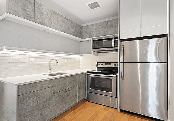First two photos are virtually staged. Now offering $1,200 Amex gift card! Make your home in the heart of North Brooklyn. Welcome to 56 Frost, an 8 unit, boutique luxury building situated at the crossroads of Williamsburg and Greenpoint, two of Brooklyn's most beloved and historic neighborhoods. Built in 2016, 56 Frost features high end, contemporary design considerations both throughout the building's common areas and within each spacious and sun-filled unit. Building amenities include card operated washer/dryer units, a tenant fitness room, and partial shared roof access. Transportation can be found approximately 5 blocks away with L train station at Lorimer St, as well as the G train at Nassau Ave. Unit #4F is a 3 bedroom penthouse, 1.5 bathroom duplex apartment located on the 4th and penthouse floors. The apartment opens up into a large living space and open kitchen. This space can accommodate a generous amount of seating, such as a sectional couch, with additional room for a small dining table, desk, or other additional furniture. Both the full and the half bath are accessible from the apartment's common space, allowing the tenant's to keep the half bath as a guest washroom if desired. The three equally sized bedrooms feature floor to ceiling windows which let in generous light. The two bedrooms on the lower floor each contain their own private access to a shared balcony, while the upper floor bedroom has its own private access to a spacious roof deck. Additionally, each bedroom, as well as the living room, has its own heat and air conditioning unit built in, giving tenants the ability to heat and cool the apartment by zone, while eliminating the need for bulky window air conditioning units. Apartment Details: - Sunny, equally sized bedrooms - One full and one half bathroom, both accessible from the living area - Open kitchen with stainless steel appliances including dishwasher and built in microwave - Zoned heat and air units in every room - Two private outdoor areas: downstairs balcony and upstairs roof deck - New hardwood floors throughout - Virtual doorman - Building amenities include: laundry room, fitness room, and shared roof space.