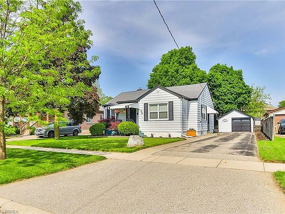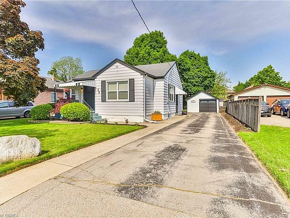 Don't be fooled, this inviting 3-bedroom, 2-bathroom bungalow is much larger than it looks! Nestled on a mature tree-lined street in the heart of desirable Terrace Hill in midtown Brantford, this charming home has been extensively updated in recent years, boasting modern features and a cozy atmosphere. The main floor showcases rich dark walnut floors, creating a warm and elegant ambiance throughout. The upgrades are plentiful, with windows replaced in 2020/21, a new patio door in 2020, exterior doors in 2023, furnace and A/C in 2020, tankless hot water (owned) in 2020, Garage roof in 2020, garage door in 2022 and the main floor bathroom received a stylish makeover in 2022. The lower level features new vinyl plank flooring, a handy wet bar off the huge rec room, a convenient second 3-piece bathroom, a practical cold room as well as laundry and utility/storage room. Step outside to your private oasis – a deck overlooking the fenced yard with a resin storage shed for extra convenience. The serene property sits on a pool-sized lot, just shy of a quarter acre, with trees and lawns professionally cared for by a local reputable landscaper from April to September. For those with hobbies or in need of extra space, the detached heated garage (28' x 15') is a perfect retreat, whether as a man cave or workshop. Enjoy the peace and quiet of the neighborhood while being close to schools, restaurants, shopping, medical centers and Brantford General Hospital. Additionally, Connaught Park is mere steps away, offering a playground, baseball diamonds, and a basketball court for outdoor enjoyment. With easy access to the 403, this home combines comfort, convenience, and modern living in one desirable package. Don't miss out on this gem. The pictures don't do justice to the beauty of this home. You must see in person to truly appreciate.