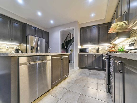 Located On Mississauga-Brampton Border This1995 Sqft Executive 4 Bedroom Townhome A Grand 9Ft Foyer That Opens Up To A Magnificent Oak Staircase With Iron Pickets The Open Concept Homes Opens Into A Chef's Kitchen With Stainless Steel Appliances With A Gas Stove For Perfect Dishes, Center Island, Plenty Of Cabinets Master Bdrm W/ 5 Pc Ensuite, His And Her Walk In Closets, Garage-Entry, Double Door Entry, Great Family Room With Fireplace Near Hwy 407 And 401