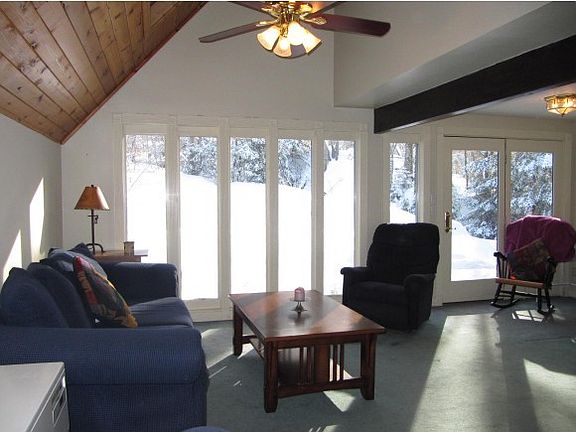 Ski in/Ski out and live the good life at Bolton Valley Resort Community. This is a privately owned home with public/community sewer and water. Enjoy great features such as the large private wooded lot with a stream, and a large wrap around deck that has ample room for a hot tub. The Master bedroom has its own private deck with partial views. Enjoy the warm cozy fireplace and bask in the sunshine thanks to lots of light, high ceilings and southern exposure. Great Bonus space can accommodate lots of ski bums, kids, or use as a private office or meditation room. Adjacent lto the Bolton Ski Trail system. Close to Waterbury, Richmond and a reasonable commute to IBM, Montpelier and Downtown Burlington.