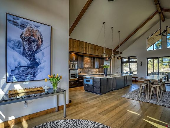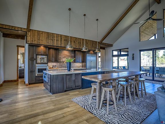 Quintessential Mountain Modern Builder's Masterpiece on 1.2 acres with views of Lake Forest, the Weminuche and the San Juan Mountains in desirable Pagosa Springs, Colorado. Owners are premier professional Designers and Builders, who put every detail into their home. Great room with vaulted ceiling and an abundance of windows floods natural light throughout the room showcasing the excellent choices in finishes. Custom knotty alder 8' doors and trim, timber accents, built-ins with down lighting, gas fireplace and 65' flush mount tv, absolute top-of-line lighting fixtures all combine for a clean, open and airy mountain modern environment. Chef's kitchen features Thermador Bakers-style oven, 6-burner + griddle range, microwave drawer and full-service plumbed beverage center perfect for your morning Cappuccino, Latte or Double Espresso. Head around the corner to the Prep Galley complete with its own prep sink, wine cooler and cigar humidor. This space also services as a central office space eliminating the 'kitchen counter' drop zone temptation. Oak engineered hardwood with in-floor radiant heat for cozy toes all winter and on our cool Colorado mornings. Spacious primary suite with lake views, huge ensuite bath and private wet bar will make this your 'go to' room for quiet time. At the opposite side of the home, you will find 2 guest suites each with their own custom tiled sink and private closet area with shared custom tiled full bath and shower. 1200 sf garage with pull through doors, storage loft and ready for a full heated workshop, or storage of your mountain toys. Located on a paved road within Eaton Pagosa Estates and surrounded by upper-end homes, this is a pristine example of what the mountain town buyer is hoping to find in Pagosa Springs. Pagosa Eaton Estates owners have their own private fishing dock and lake access, but also have access to all 4 trout and bass stocked lakes in the Pagosa Lakes area, along with access rights to the recently remodeled Ralph Eaton Rec Center with an abundance of workout equipment, a lap pool, Pickleball, volleyball, basketball and fitness classes. Pagosa Springs Golf Course is less than 5 minutes away, as is the Pagosa Mountain Hospital, City Market and an abundance of mountain eateries. Paved walking and biking paths spread out in every direction. Want to hike or mountain bike in the San Juan Nation Forest? Multiple access points are within 2 miles. This stunning home is hard to do justice by pictures alone. Schedule an appointment to see unmatched quality and attention to detail this home affords. 2023-10-26