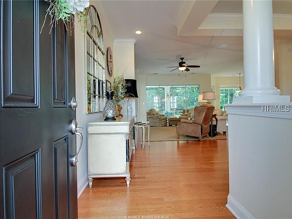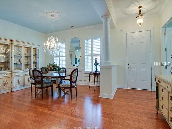 Upgraded EXPANDED Waverly Floorplan in Hampton Hall. Plantation Shutters, double oven, custom cabinetry in family room, storage closets in garage are just a few items that set this apart from any other home in this area of Hampton Hall. 3 br/2 ba w/study, meticulously maintained landscape, stainless steel appliances and hardwood flooring throughout. Expansive and private back yard, with a side view of the lagoon. This is a must see, and dont forget to look at the garage as the owners added much needed storage space, and there is still room for a golf cart and two cars... FANTASTIC