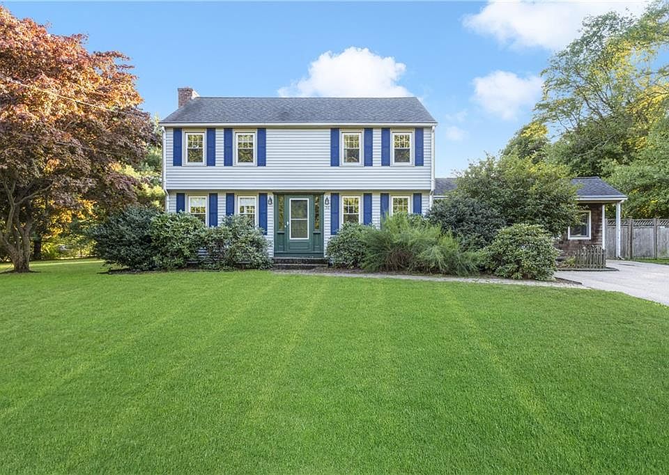 Beautiful colonial style home at the end of a quiet cul-de-sac, close to Wickford and North Kingstown Town Beach! This 3 bed - 2 full bath home offers hardwood floors throughout, a large living room with fireplace and formal dining room. Oversized, sun filled family room with vaulted ceilings, gas stove and sliders to the backyard is a perfect place to relax with family and friends. The eat in kitchen offers granite counters, pantry and plenty of storage and counter space. Three generous sized bedrooms and a second full bath are located on the second floor. The home sits on a large corner lot, plenty of parking and a private, fenced backyard with patio and shed. Close to North Kingstown High School