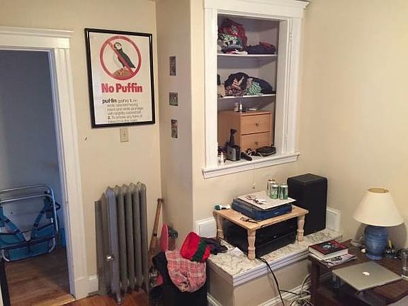 Available 01/01/2017. Apartment has 4 beds, 1 bath, and modern kitchen. Renovated last year. New kitchen with all new white cabinets, new appliances (all stainless: french door fridge, gas range, microwave above range, dishwasher, disposal) and dark granite countertops. Updated bathroom with new tile floor, all refinished tile, new toilet, reglazed bathtub, new mirror, new vanity, new plumbing, and light fixtures). Hardwood floors throughout refinished and whole apartment was painted. 2 Porches. Small backyard. Storage in basement. Washer/Dryer in basement (regular, not coin-op). Please call, text, or email for a viewing today. Water, sewer, and trash included in the rent.