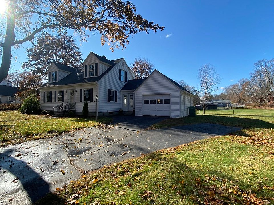 Well maintained classic cape! Arched doorways off entry to Dining & Living rooms. Built-in & closet in Dining room for storing entertainment items. Spacious Living room with great light. First floor bedroom or den adjacent to the tiled full bath with shower & new tile floor. Retro kitchen with granite counters & new microwave, oven, dishwasher and laminate flooring. Breezeway between garage and kitchen. Hardwood floors both levels Freshly painted throughout. Second floor is extremely spacious due to full dormer in the rear and A dormers in the front. Front to back master with 2 closets, a dormer & eave storage, Full tiled bath with tub/shower combo between master & second front to back bedroom. Home warranty included. Sweeping back yard - over a half acre!