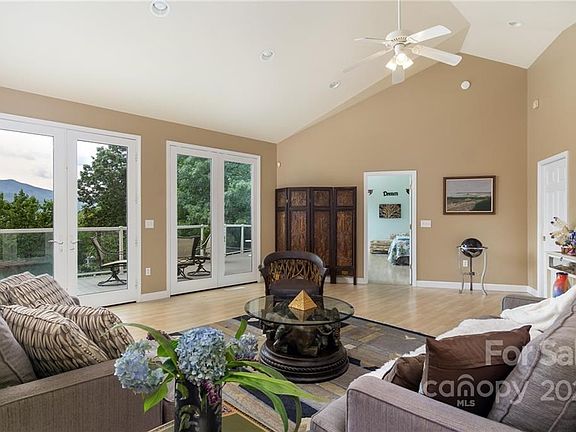Perched atop a Candler Mountain, this one level home is built to enjoy incredible-long range mountain views. The two primary suites are at either end of the home, giving you plenty of living space in the center of the home to observe the ever changing mountain visuals. The charm is heightened with vaulted ceilings throughout the house, accentuating the desirable light filled space. With dramatic windows adorning the entire front expanse, you will not miss out on a view from any room! The screen porch is a bug-free hideaway, w/access from one bedroom or the deck. The property is low maintenance with lovely landscaping, and no need to mow a lawn. The pairing of vinyl siding and an extensive front deck boasting composite wood makes the up-keep of this home a breeze. The basement is already framed-in & plumbed, making this a perfect option for expanding square footage. With great short term rental potential, a mountain vacation home, or a primary residence, this house has much to offer! 2022-08-04