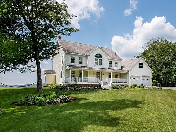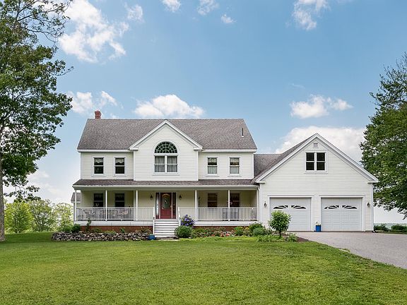 This Stately New Englander sits on over 2 acres of well landscaped grounds and breathtaking Westerly views as far as the eye can see. An inviting covered entry porch that leads you into a large formal entry with plenty of room to bring in the guests. The first floor opened into a living room to the left, the dining room to the right and straight forward into the large open concept living room and kitchen with entire area opening onto a large back deck. The kitchen is well proportioned with lots of cabinets space. As you walk toward the garage you'll arrive into a large mudroom siting area with a private office. From the entry leading upstairs you'll find a large master bedroom suite with a view of Sennebec Pond, and three additional bedrooms all with walk in closets. There is a staircase that leads to a large finished attic space ready for you to add your finishing touches. An oversized 2 car garage with a huge finished room above that you enter from the second level. There is a large basement with plenty of additional storage. This house has so much to offer.