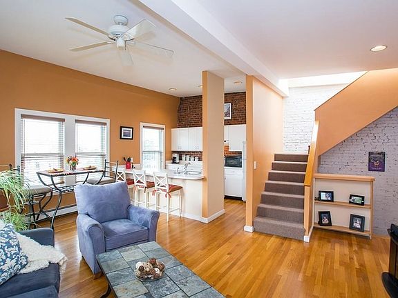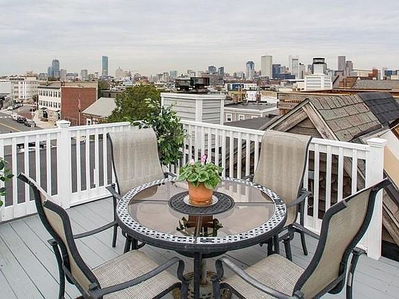 JUST LISTED!! OPEN HOUSE SUNDAY NOV 5th 12-2 pm! What makes THIS Garden style condo so Special? Well, for starters, it's the LOCATION!! Penthouse Corner unit offers you AMAZING LIGHT and SWEEPING VIEWS of the Boston Skyline right from your Living room and Kitchen windows!! NO buildings in front to block your view. High ceilings, Hardwood floors, wood burning fireplace, and exposed brick just add to the charm and sophistication. White kitchen is timeless with huge breakfast bar or serving area. Updated windows, newer hot water heater, in unit laundry and storage in the basement.RECENTLY UPDATED bath with spa like features makes you want to linger... Master Bedroom opens to your outside balcony. BUT WAIT..... THERE'S MORE!! The BEST part of this unit is the walk up to your private roof top deck!! Share great memories with friends and family watching the sunset and enjoying warm summer evenings with a cold beverage. You can See when the cruise ships dock! This is City living at it's BEST!