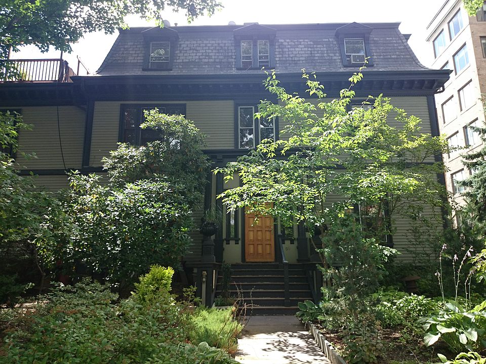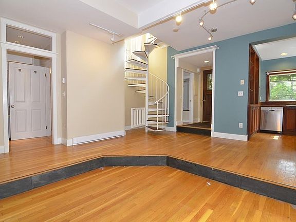 Stunning Carriage house surrounded by large Japanese garden with parking space. The Amazing townhouse is located just down the street from the Boston - Brookline line and has 2 Full bedrooms 2 Full Bathrooms plus separate Study. The Living room has a Large wood/Coal burning Fireplace and large glass sliders out to a stone court yard. The Upper Floor Master Bedroom has it own en-suite Bath and Large Private Deck surrounded by windows. Central AC, Washer and Dryer in Unit and 1 Parking Space included.