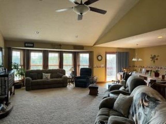 Custom-built ranch with quality 6-panel solid doors and oak trim. Open concept with vaulted ceilings, natural light, gas fireplace, deck, and walk-out to the patio. The kitchen has a wood floor, plenty of cabinets and countertops with undercabinet lighting, a pull-out drawer, and a pantry. The master bedroom on the main floor hosts a vaulted ceiling, a walk-in lighted closet, a jacuzzi tub, and a walk-in shower. On the lower level is the media room with surround sound, a family room, finished storage under the steps, and another master bedroom with ensuite including a walk-in shower and walk-in lighted closet. There is a workshop area and a storage area. Updates include electric cooktop and driveway sealed in 2024, garbage disposal and dishwasher in 2023, 75-gallon water heater in 2022, A/C and dryer in 2021, roof, northwest siding, shutters, garage lights, deck flooring and railing in 2020, Dubuque fire alarms and washer in 2018, radon mitigation in 2010.
