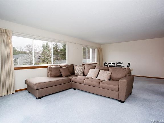 End weekend weeding and enjoy this move-in ready, ranch style, spotless condo on the second floor. Open the over sized windows and let the sun light fill the open floor plan of the living room, dining room, and kitchen! This virtually maintenance free condo also offers two ample bedrooms, one bathroom and a private deck with a great view. The washer and dryer is conveniently located in the hallway closet and the one car detached garage will protect your vehicle from the New England winters. Looking for local shopping, restaurants, and/or biking and walking paths in Simsbury? Look no further than 56 Hilltop Drive and schedule your private showing today!