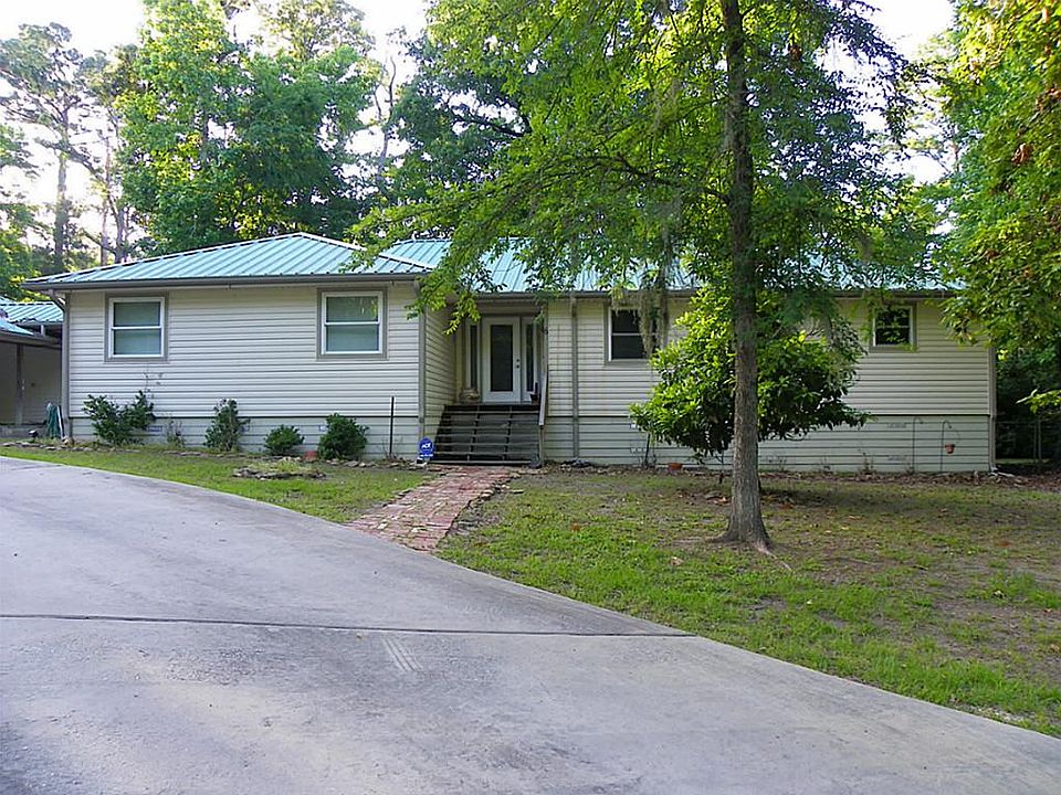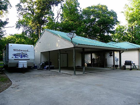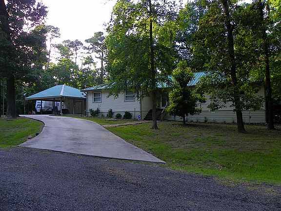 Beautiful home on 4 wooded lots in gated community. Home features include open concept living, dining and kitchen. Vaulted ceiling in living room with fireplace. Custom kitchen with propane stove & double oven. 2 master bedrooms & 1 guest bedroom. 1st master bathroom has double sinks and large shower with dual shower heads. Fenced yard, 2 covered back porch areas, large workshop with bathroom, RV parking and hook-ups. Community features golf course, lakes, pools & Lake Livingston access.